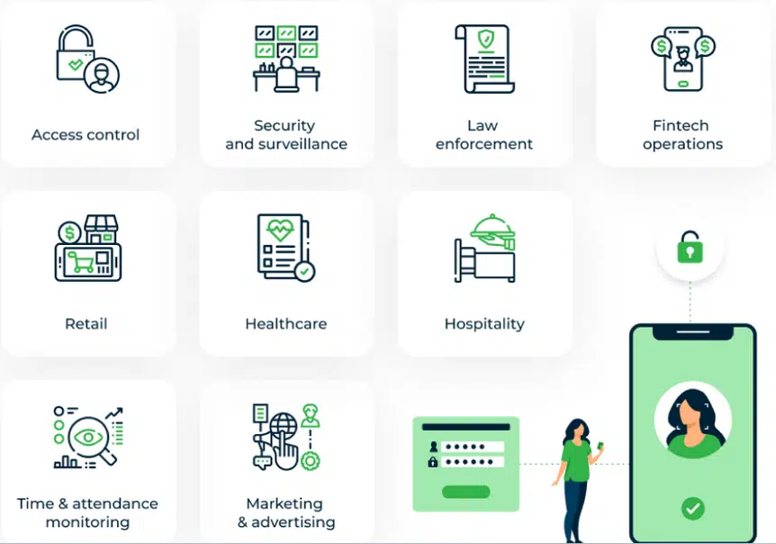 فناوری تشخیص چهره به سرعت در حال رشد است و انتظار می رود تا سال ۲۰۲۸ به ۱۳.۴ میلیارد دلار در سطح جهان و با نرخ رشد ۱۶.۳ درصد در هر سال برسد. در واقع، از سال ۲۰۱۷ تا ۲۰۱۹، ۶۴ کشور استفاده از نظارت با بهره گیری از هوش مصنوعی و با تشخیص چهره را آغاز کردند. یکی از دلایلی که تشخیص چهره به سرعت مورد استفاده قرار میگیرد این است که میتوان آن را در بسیاری از صنایعی که شناسایی چهره انسان در آنها بسیار مهم است، به کار برد. بیایید به صورت جزئی تر چند کاربرد را بررسی کنیم.