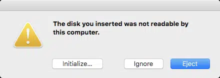 4- کارت microSD خود را وارد کنید. اگر سیستم مک شما این پنجره را نشان داد روی Ignore کلیک کنید.