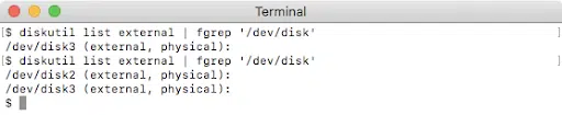 3- از این دستور برای فهرست کردن هر دستگاه دیسک خارجی که قبلاً به Mac شما متصل شده است استفاده کنید: