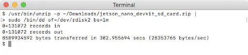 /usr/bin/unzip -p ~/Downloads/jetson_nano_devkit_sd_card.zip | sudo /bin/dd of=/dev/rdisk<n> bs=1m