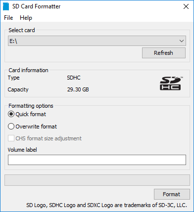 - SD Memory Card Formatter را برای ویندوز دانلود، نصب و اجرا کنید.